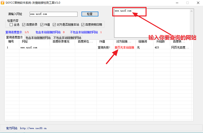 友情链接检测工具,本工具可以批量查询友情链接在百度的收录情况,快速获知哪些友情链接在百度收录数量为0,同时能查询友情链接的PR、以及对方是否有链接本站,即时了解哪些友情链接私自撤下链接。有需要的赶紧来下载使用吧。