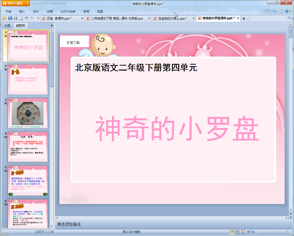 这是北京版小学二年级课文神奇的小罗盘ppt课件,课件共有16页内容丰富,对课文的讲解十分详细,有需要该课文课件进行教学的老师们可以来我们东坡看看,喜欢就来免费的下载使用吧!