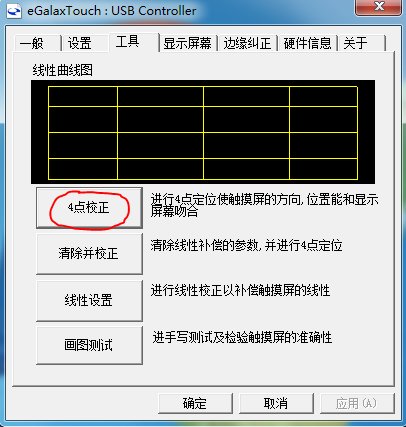 5:单击”工具=》4点校准=》点击屏幕上依次出现的4个点“: