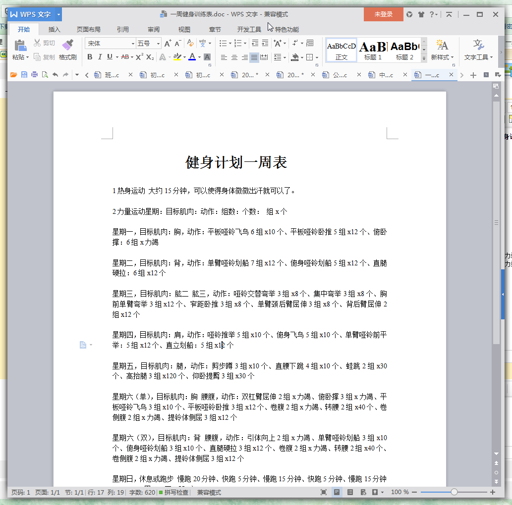 2力量运动星期:目标肌肉:动作:组数:个数: 组x个