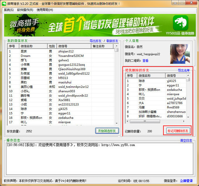 她最快只需3秒钟,就能找出已经把你删除的好友。从此我们无需诚惶诚恐群发消息,就能无声无息把他们筛选和标记出来。