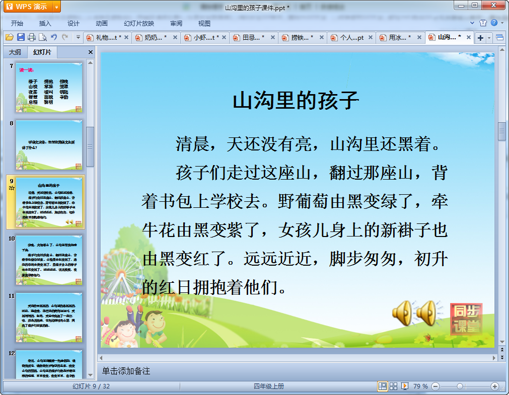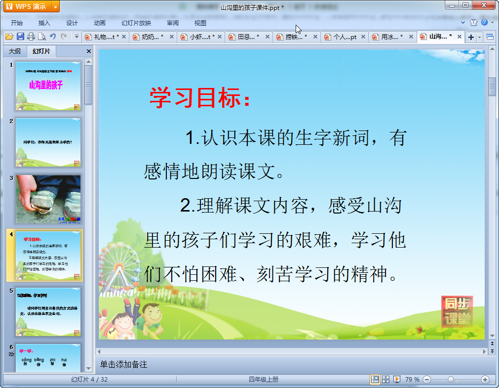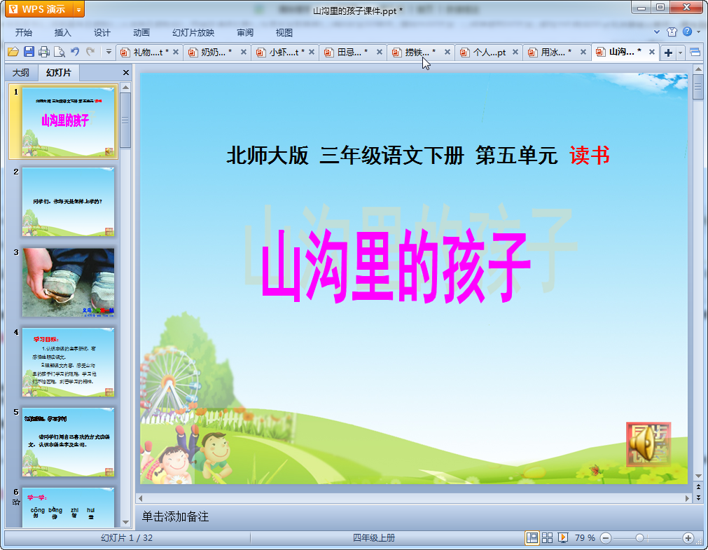 我们东坡下载站给大家带来的这篇山沟里的孩子教学课件,内容制作精美添加大量的配图让同学们更深刻的体会到课文表达含义,非常具有教育意义的ppt课件,有需要的老师们可以来下载这篇共有32页的山沟里的孩子教学课件!