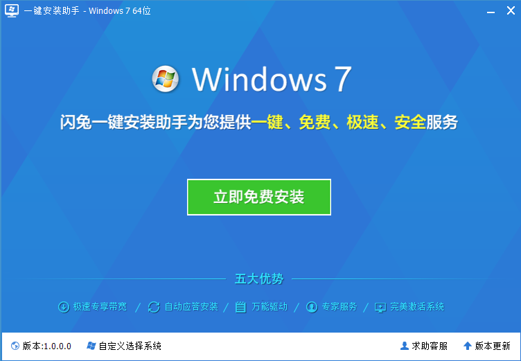 一键安装Win7系统助手完全绿色,可完全本地化安装,享受一键安装系统的极速体验。
