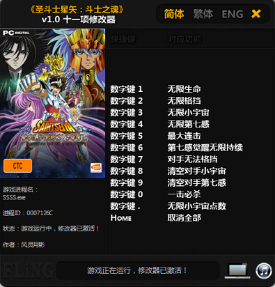 圣斗士星矢战士魂十一项修改器,能够让你在游戏里拥有很多的强大功能,比如无限生命、无限格挡、无限小宇宙等,有需要的赶紧来东坡下载使用吧。