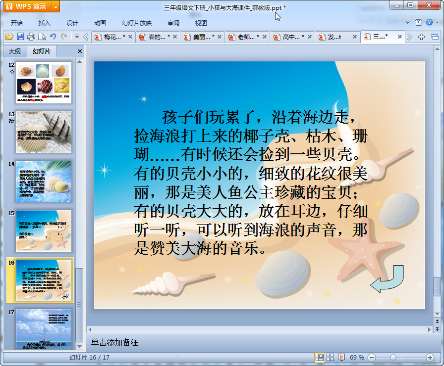 这是一篇鄂教版小学三年级下语文课文中的小孩与大海教学课件,课件共有13页内容制作比较精美,对课文讲解的十分详细,有需要的老师可以来我们东坡免费的下载使用!