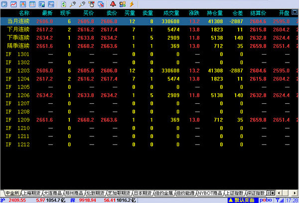 3.对于IF品种,在当月合约交割当天(合约到期月份的第三个周五,遇国家法定假日顺延)13:00-15:00期间,分时走势图上会出现一根黄色虚线,也就是交割估价线,这根线是根据沪深300算术平均得出的,且实时变动
