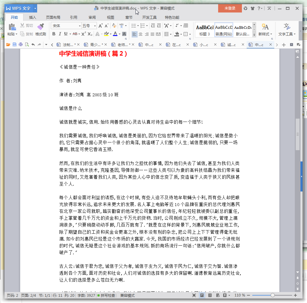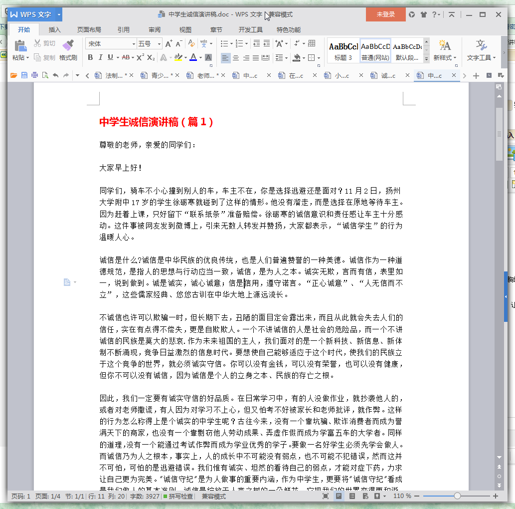 这里给大家带来的是中学生诚实守信演讲稿大全,该大全内容非常丰富里面共有4篇诚实主题演讲稿范文,有需要该演讲稿范文的同学可以来免费的下载这篇诚实守信演讲稿大全!