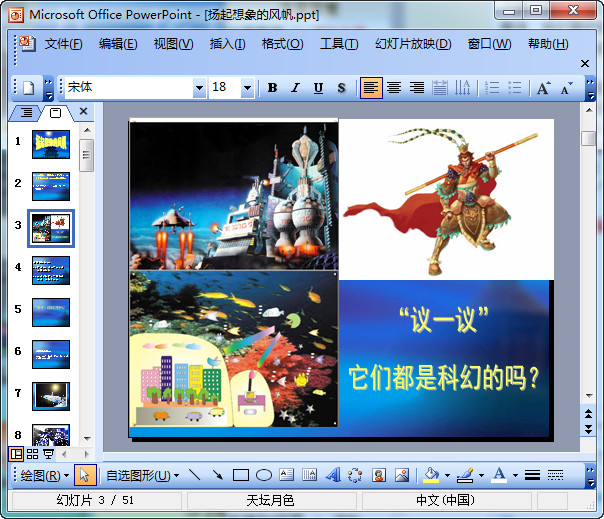 记得小时候,老师经常告诉我们要培养想象力。扬起想象的风帆主题班会ppt课件,总共有51页,里面告诉了大家什么是想象,应该怎么样培养想象力,非常的有趣。让大家了解科学,学会想象。欢迎前来东坡下载使用。