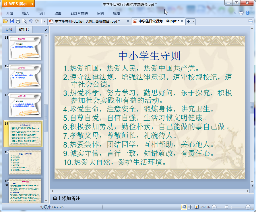 这是由东坡下载编辑整理的中学生日常行为规范主题班会ppt,该课件共有26页内容比较丰富,可以引导学生们快速学习中学生日常行为规范,有兴趣的老师们可以来我们这里免费的下载使用!