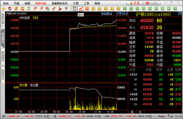 2.期货品种分时走势图中黄线为均价线,即当日开盘至这一分钟加权平均价的连线。