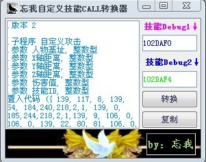 忘我自定义技能CALL转换器,一款非常不错的写辅助软件,非常适合喜欢破解软件和自己写辅助的朋友使用,有需要的赶紧来下载使用吧。