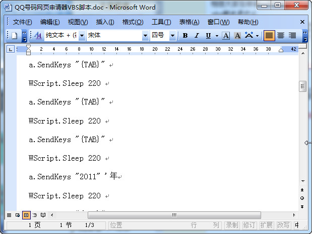 在自己的电脑上右键新建一个txt文本文件,复制上面红色的源码,粘贴到新建的文本文件中,保存。然后把扩展名 txt 改为 vbs ,当然,你的电脑需要显示扩展名,这样QQ号码快速申请器就编辑成功了。然后双击它打开,就会自动帮你填写昵称、密码的信息,只需自己填写验证码,确定即可,现在申请还要填写手机号码验证。上面源码有中文注释,QQ昵称、密码等可自行修改。