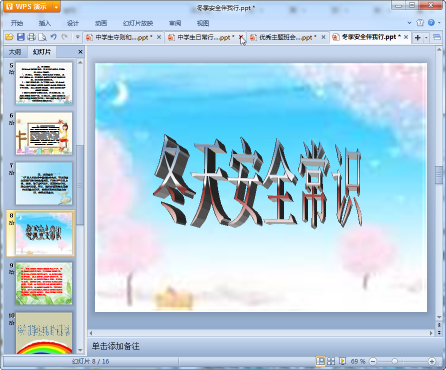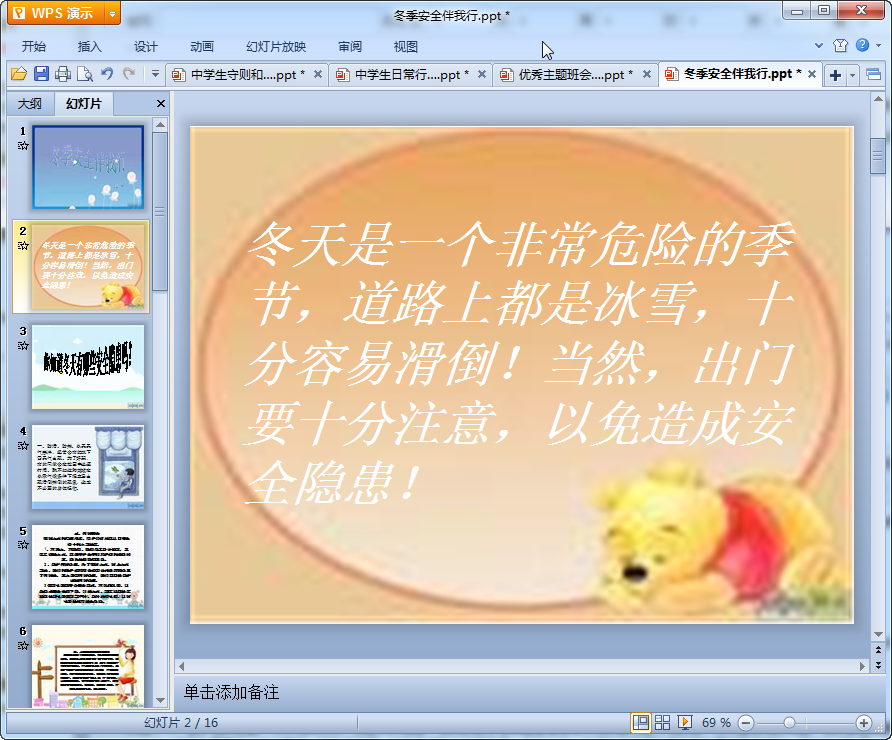 这是一篇高中冬季安全伴我行主题班会ppt课件,共有16页制作精美,对叛逆期的高中学生们来说有一定的警示作用,有需要该课件的老师们可以来我们东坡免费的下载使用!