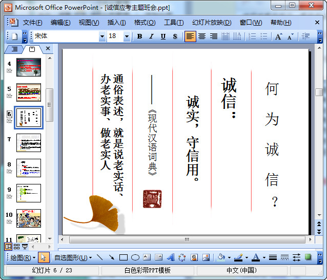 高中生诚信考试主题班会ppt,总共有22页,告诉大家考试要诚信,从开班会的目的,到什么是诚信,怎么样诚信考试,讲诚信对大家有什么好处这些内容,最后宣读诚信考试承诺书,非常的合理,欢迎前来东坡下载使用!