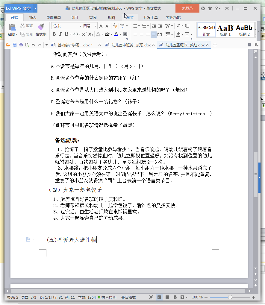 2、大圣诞树,成人圣诞服装一套,幼儿圣诞帽每人一顶。幼儿礼物每人一份。小奖品若干,智锦盒一个,内装若干智力题卡片。