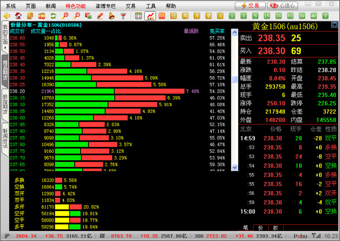 价量分布图可查看某合约的成交量、成交价格等实时的统计信息。查看价量分布有以下几种方式: