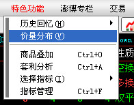 1.点击菜单栏中的“特色功能”,在下拉菜单中选择“价量分布”(如图)。
