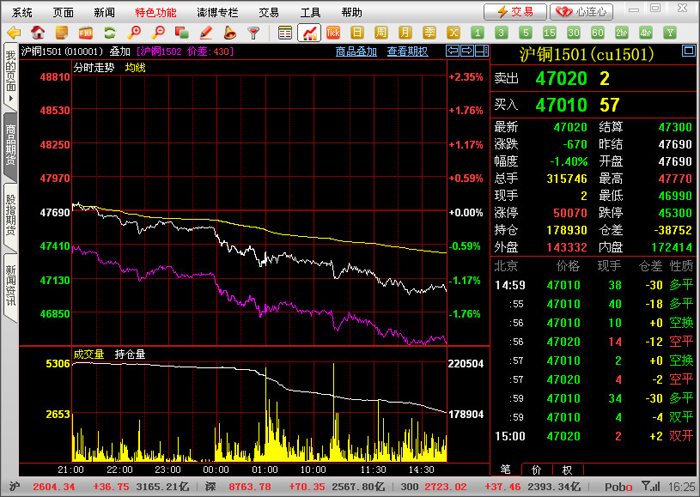 博易大师使用简捷方便、功能完备实用、股市行情数据接收快速准确;集成自定义指标、套利分析、商品叠加、快速下单程序化交易等多种实用工具。