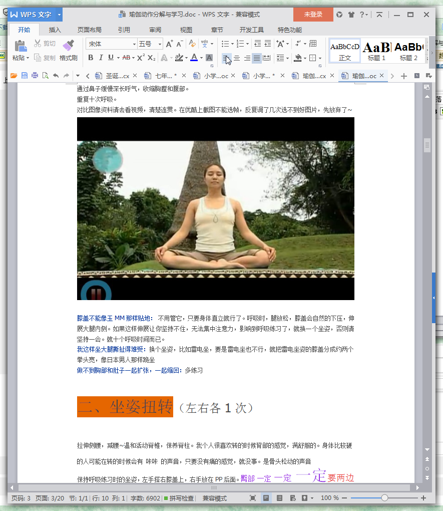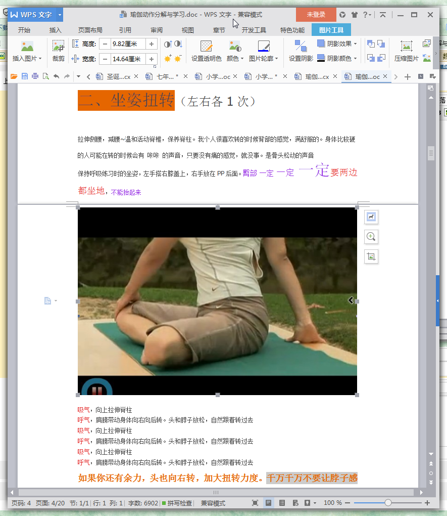 保持呼吸练习时的坐姿,左手搭右膝盖上,右手放在PP后面。臀部 一定 一定 一定要两边都坐地,不能抬起来