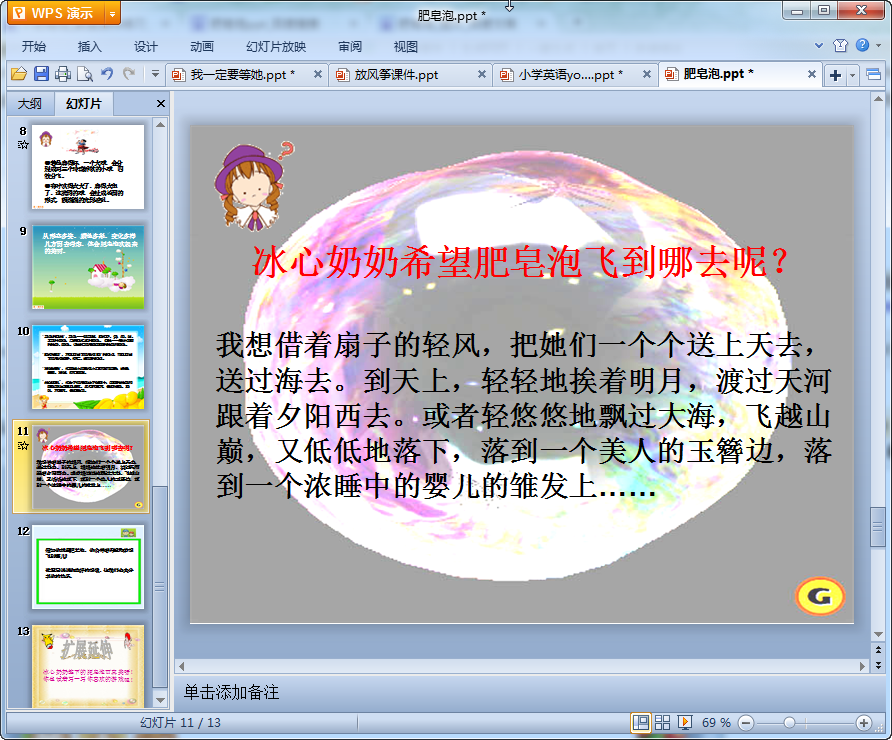 这是我们东坡下载编辑整理的肥皂泡教学课件,课件共有13页制作精美,对课文中知识点讲解比较详细,有需要该课文课件的老师可以来我们东坡免费的下载使用!我们东坡是一个纯绿色的下载站,大家可以放心的下载!