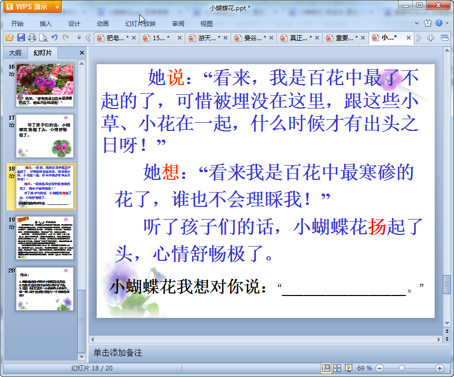 这是我们东坡小编为大家整理的一篇小蝴蝶花教学课件,这篇小学课文课件内容比较丰富共有20页比较受学生们的欢迎,有兴趣的老师可以来我们东坡下载站免费下载使用!