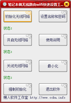 懒人笔记本做路由器wifi快速设置工具完全可以将win7电脑变身无线路由WiFi热点,让手机、笔记本共享上网,用win7建立无线局域网,可以共享上网可以局域网游戏,以操作系统为win7的笔记本或装有无线网卡的台式机作为主机均可使用