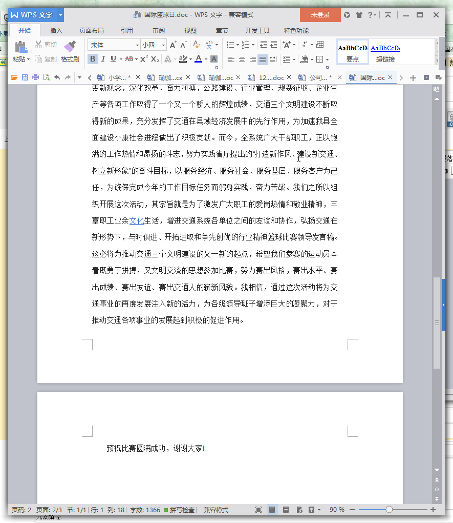春风送暖,万物复苏.在这充满生机和活力的季节里,在全县深入学习落实科学发展观的活动中,交通系统职工篮球赛,经过充分准备、周密安排,今天在这里隆重举行。在此,我谨代表交通党委对本次篮球赛表示热烈的祝贺!向参加篮球赛的广大交通系统干部职工表示亲切的问候!