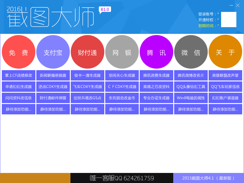 软件可以完美模拟制作超多装逼截图,常见的什么CDKey生成器、战绩修改、QB余额等等,全部功能都是免费的!!!