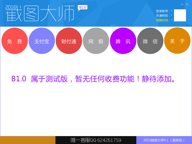 然后你还可以点击2016截图大师软件上的【关于】,B1.0属于测试版,暂无收费功能哦!