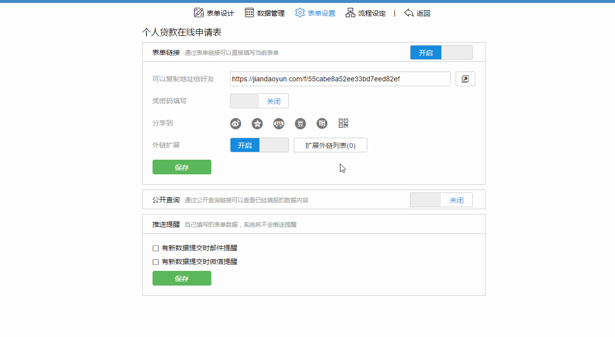 14、支持表单外链;