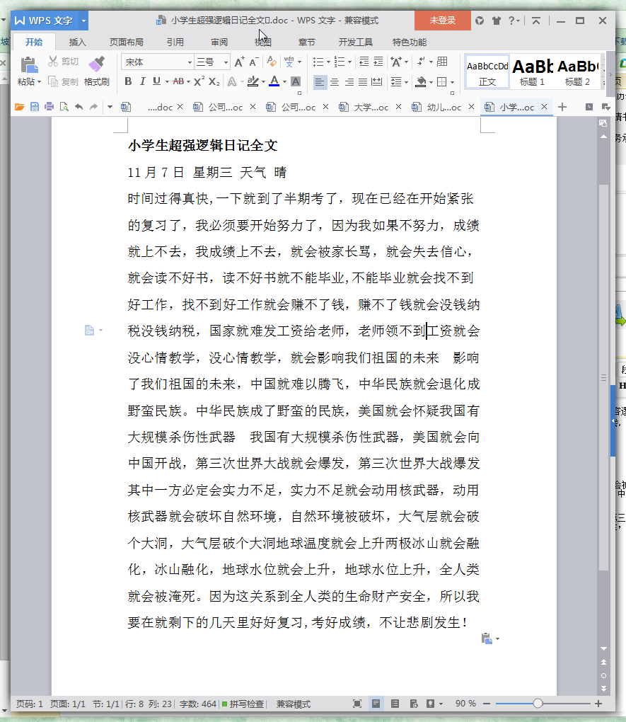 时间过得真快,一下就到了半期考了,现在已经在开始紧张的复习了,我必须要开始努力了,因为我如果不努力,成绩就上不去,我成绩上不去,就会被家长骂,就会失去信心,就会读不好书,读不好书就不能毕业,不能毕业就会找不到好工作,找不到好工作就会赚不了钱,赚不了钱就会没钱纳税没钱纳税,国家就难发工资给老师,老师领不到工资就会没心情教学,没心情教学,就会影响我们祖国的未来影响了我们祖国的未来,中国就难以腾飞,中华民族就会退化成野蛮民族。