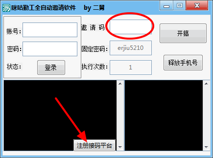 3、登录接码平台,填入你的邀请码,点击开搞即可。软件会全自动刷流量。