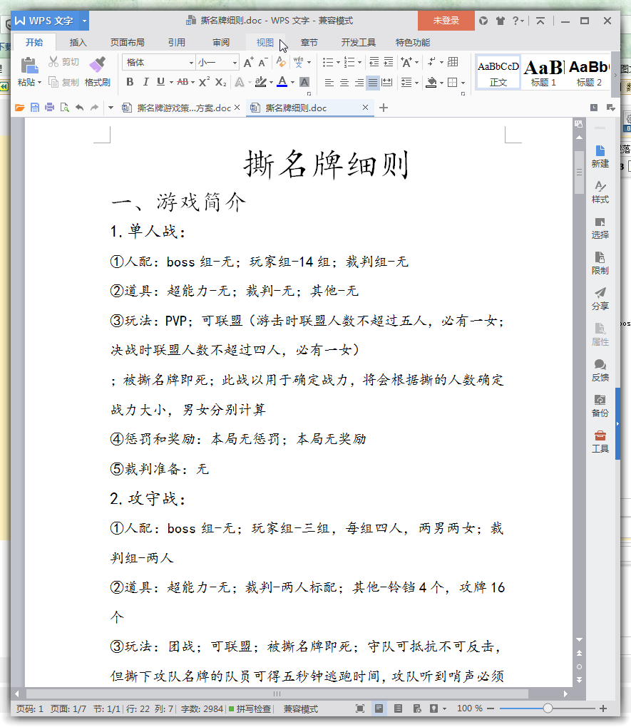 ;被撕名牌即死;此战以用于确定战力,将会根据撕的人数确定战力大小,男女分别计算