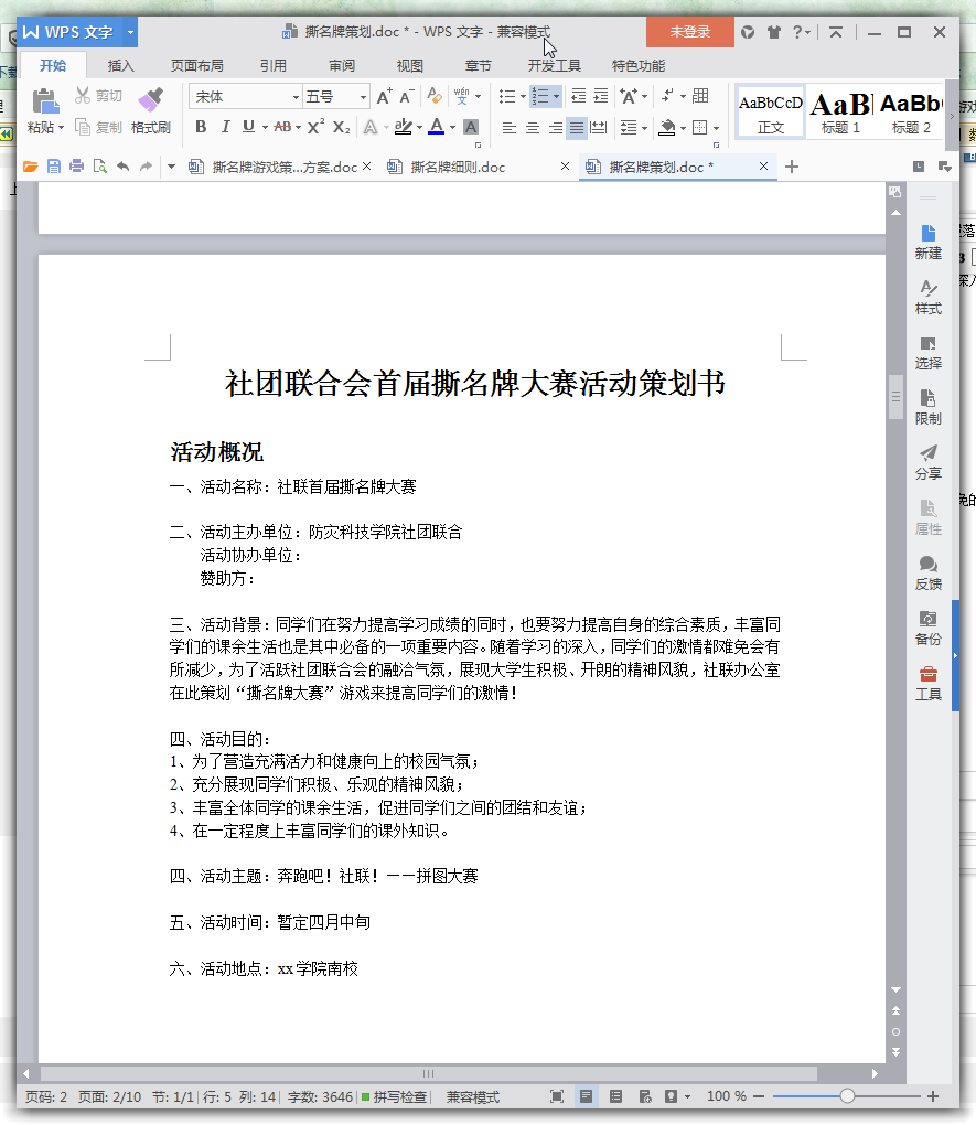 三、活动背景:同学们在努力提高学习成绩的同时,也要努力提高自身的综合素质,丰富同学们的课余生活也是其中必备的一项重要内容。随着学习的深入,同学们的激情都难免会有所减少,为了活跃社团联合会的融洽气氛,展现大学生积极、开朗的精神风貌,社联办公室在此策划“撕名牌大赛”游戏来提高同学们的激情!