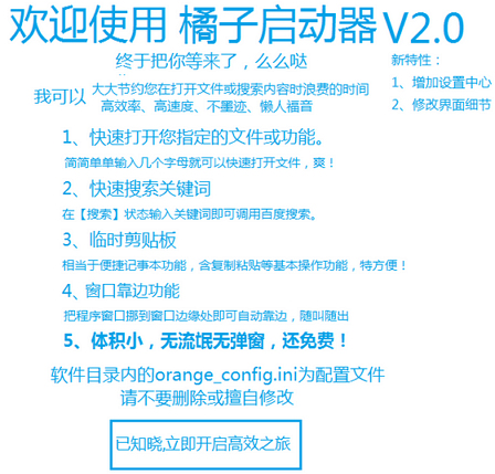 橘子快速启动软件(橘子启动器)主要有4个功能和亮点