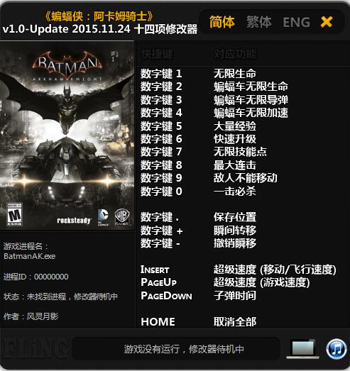 蝙蝠侠阿卡姆骑士十四项修改器1.0 风灵月影