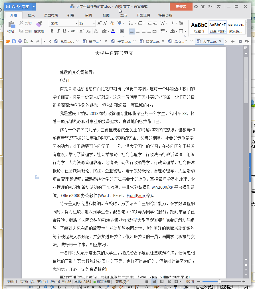 首先真诚地感谢您在百忙之中浏览此份份自荐信,这对一个即将迈出校门的学子而言,将是一份莫大的鼓励。这是一份简单而又朴实的求职函,也许它的普通没深深地吸住您的眼光,但它却蕴涵着一颗真诚的心。