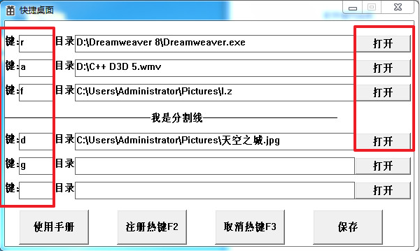 电脑桌面美化工具(快捷桌面)在系统任何情况下都能用快捷桌面定义的热键来打开相对应的文件或程序,快捷桌面可以自定义快捷键连接电脑程序以及文件,也可以用来打开文件夹,方便在我们使用软件时直接打开要打开的软件,有需要的赶紧来下载使用吧。