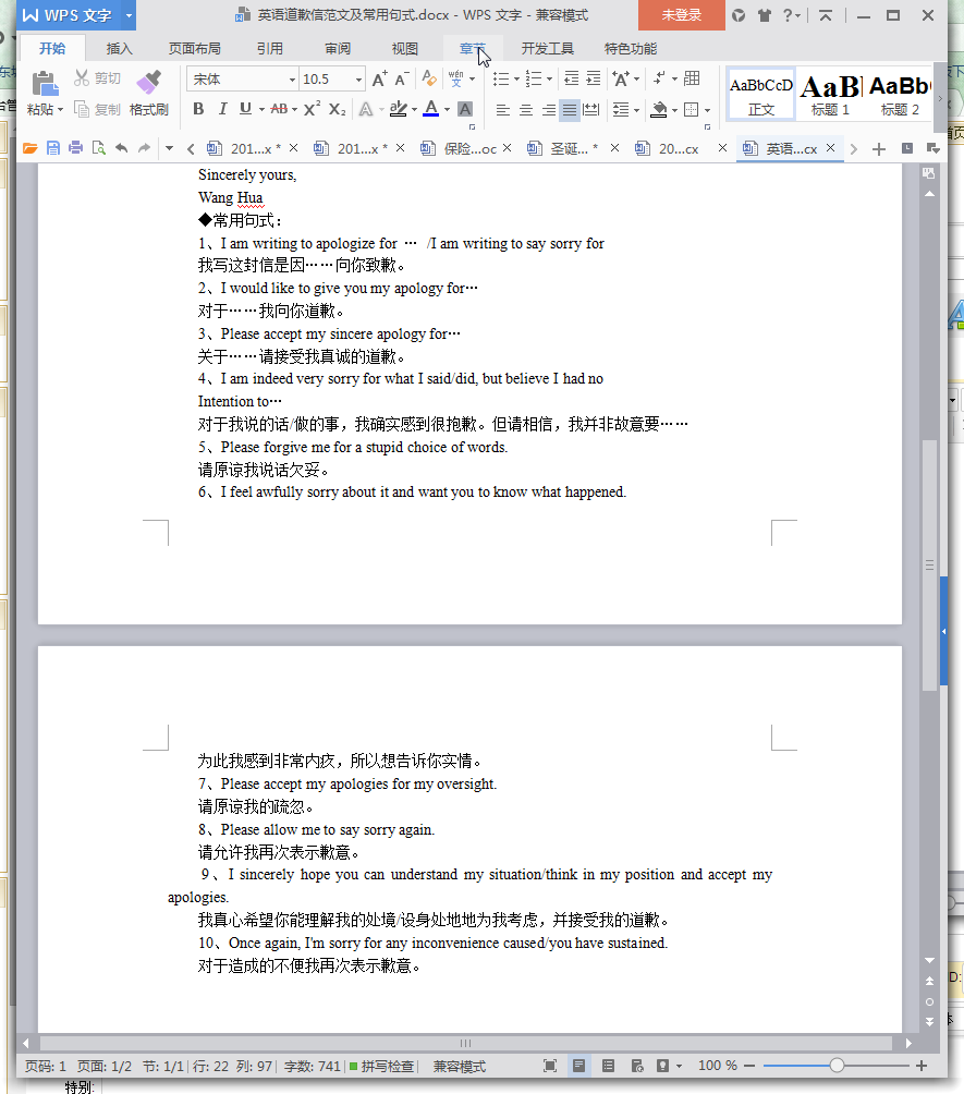 英语道歉信范文模板内容摘要