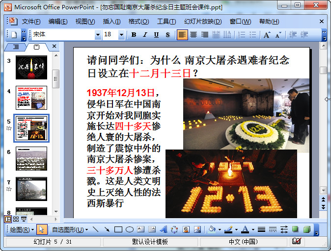 班会主题:勿忘国耻,爱我中华——纪念南京大屠杀