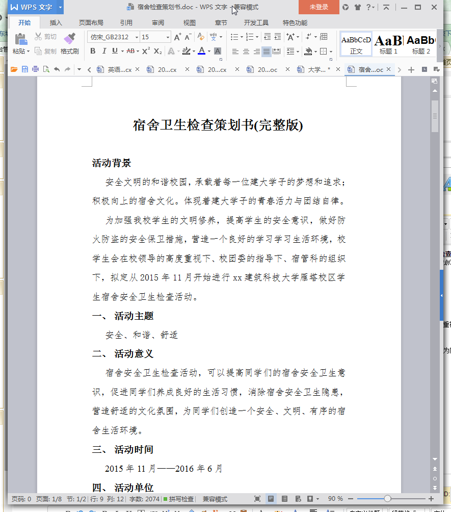 为加强我校学生的文明修养,提高学生的安全意识,做好防火防盗的安全保卫措施,营造一个良好的学习学习生活环境,校学生会在校领导的高度重视下、校团委的指导下、宿管科的组织下,拟定从2015年11月开始进行xx建筑科技大学雁塔校区学生宿舍安全卫生检查活动。
