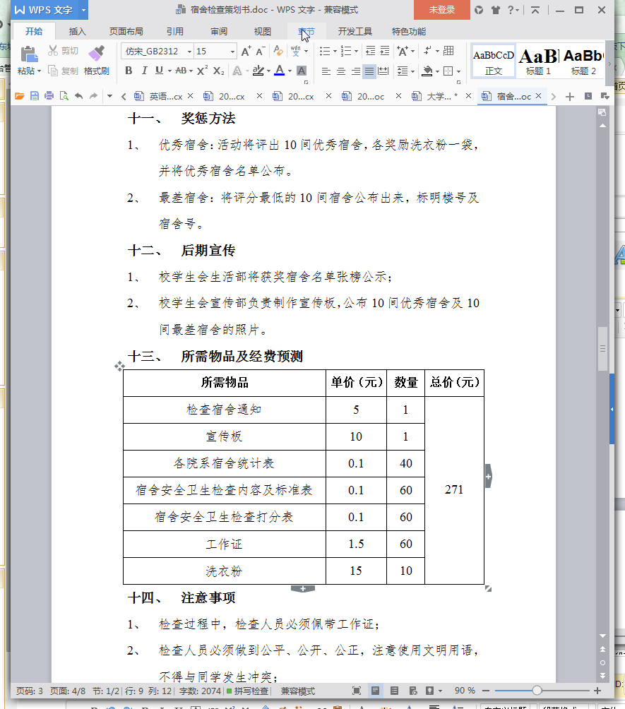 2、 在策划书通过主席团及相关老师的审核后,将检查宿舍的相关情况通知各院系学生会。