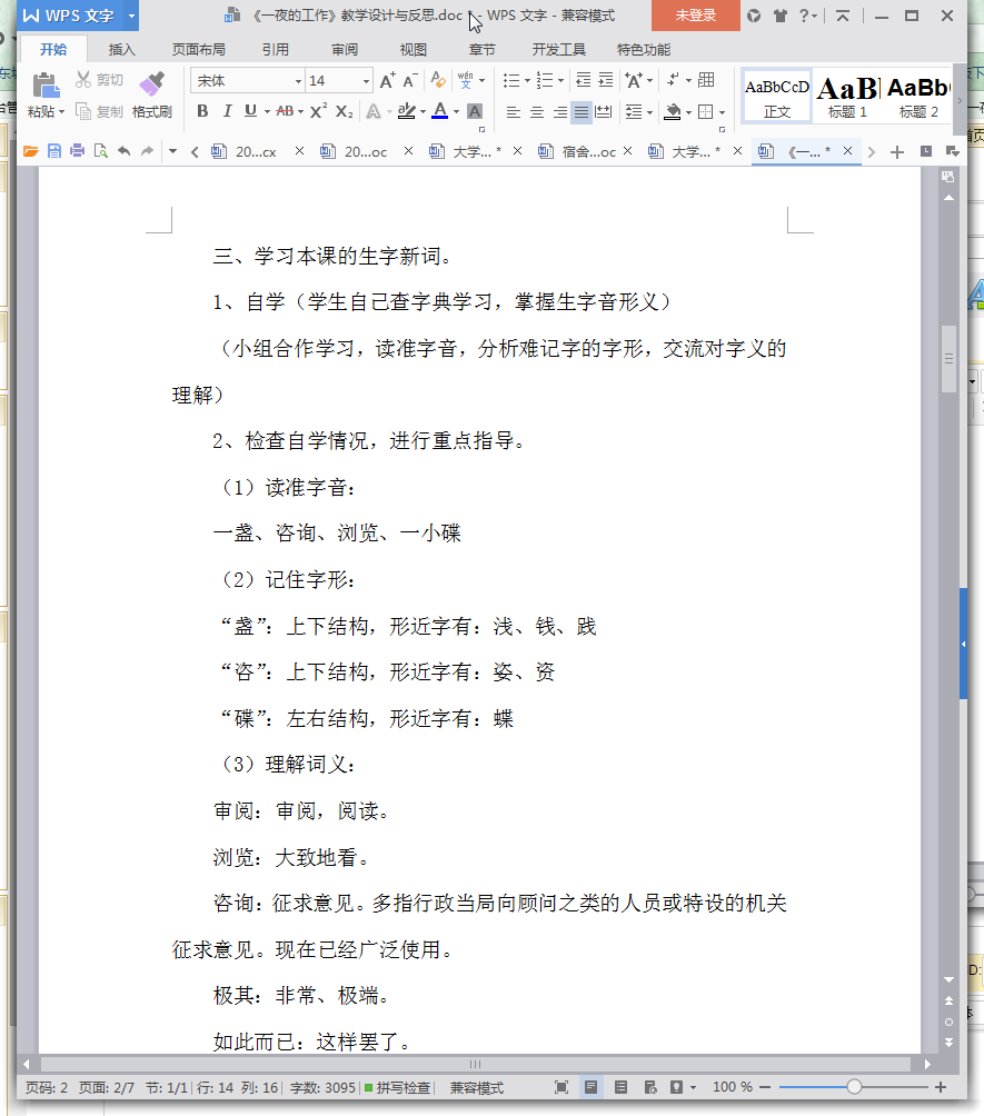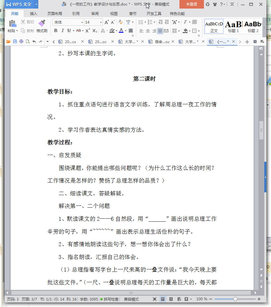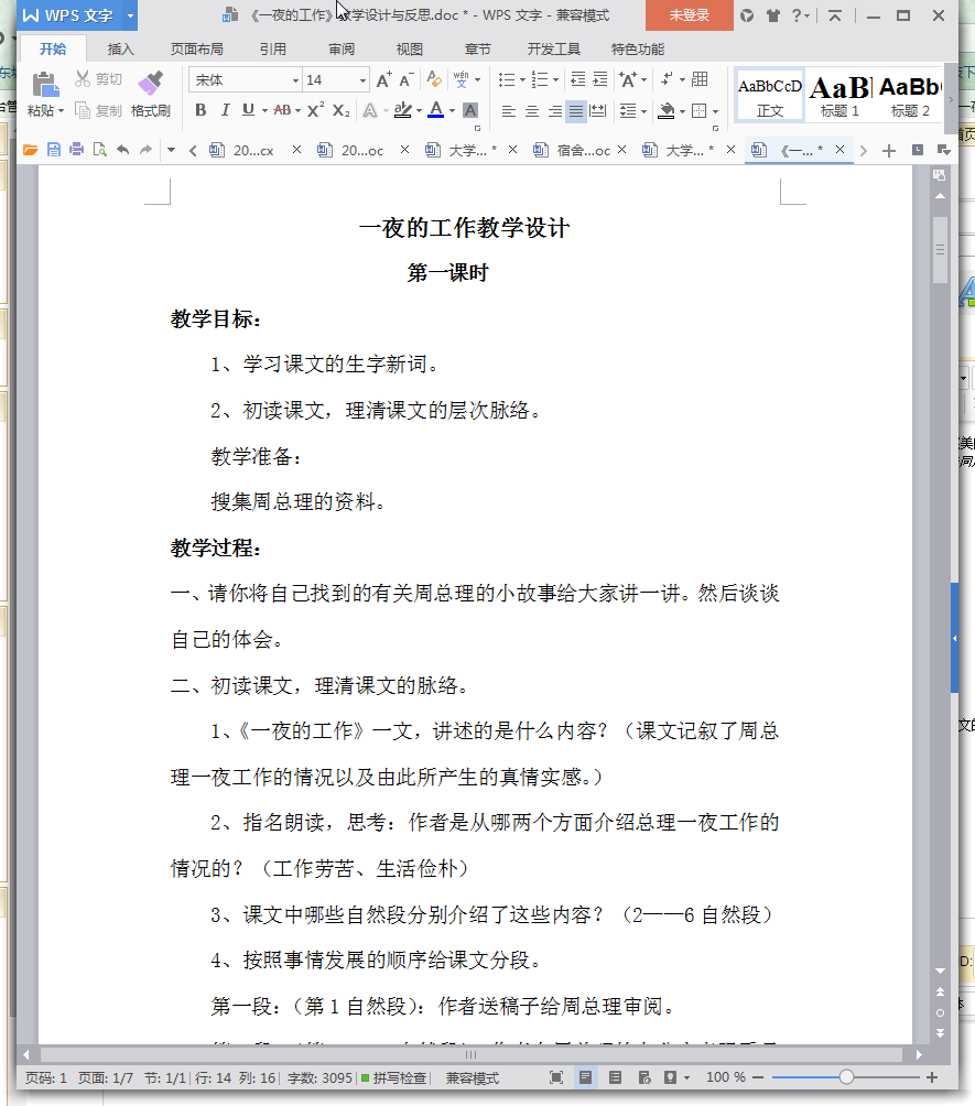 一夜的工作教学设计内容摘要