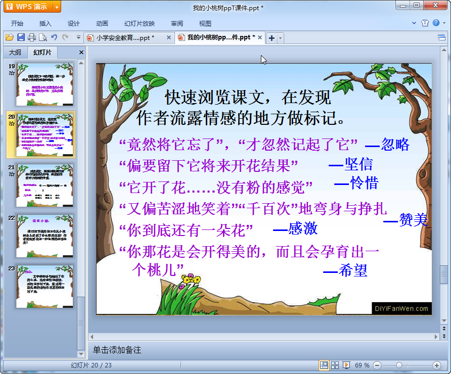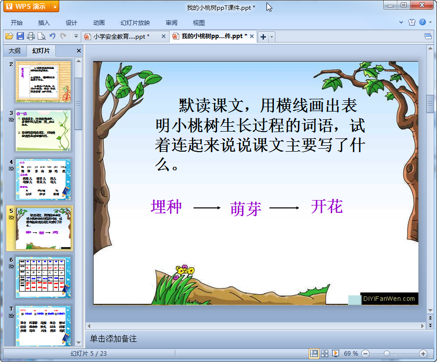 这是我们东坡下载给大家整理的我的小桃树教学课件,课件共有23页制作精美加上对课文的讲解也十分详细,深受学生们的喜爱,有需要该课文课件的老师们可以来我们东坡免费的下载,肯定不会让你们失望!