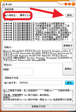 B-cat贴吧获取机,可以帮助你召唤ID、可以查看吧主ID、还可以查看贴吧的消息等功能,一款简单实用的贴吧获取机,有需要的赶紧来东坡下载使用吧。