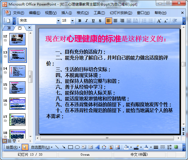 我们要为自己喝彩,今天东坡小编为大家带来的是一份完整的初三心理健康安全教育主题班会ppt,总共有33页,内容非常的丰富,让初三的同学们更加努力,更加有信心!