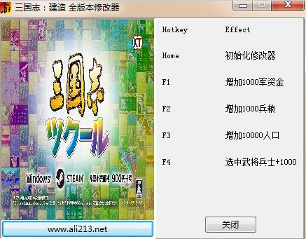 快捷键F2 增加1000兵粮(需要先初始化修改器,然后再对应的回合点击商人-武器购入,之后开启本项即可修改成功,注意数值不能超过65535)