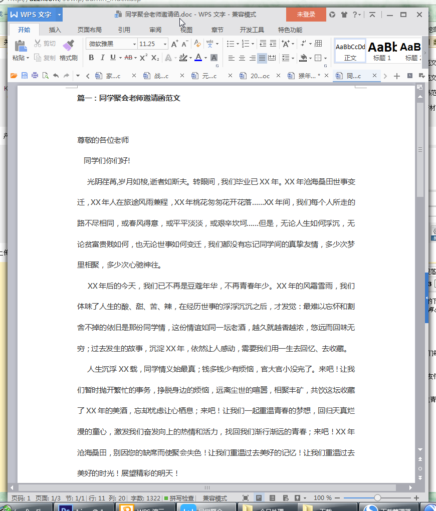 同学聚会老师邀请函内容介绍