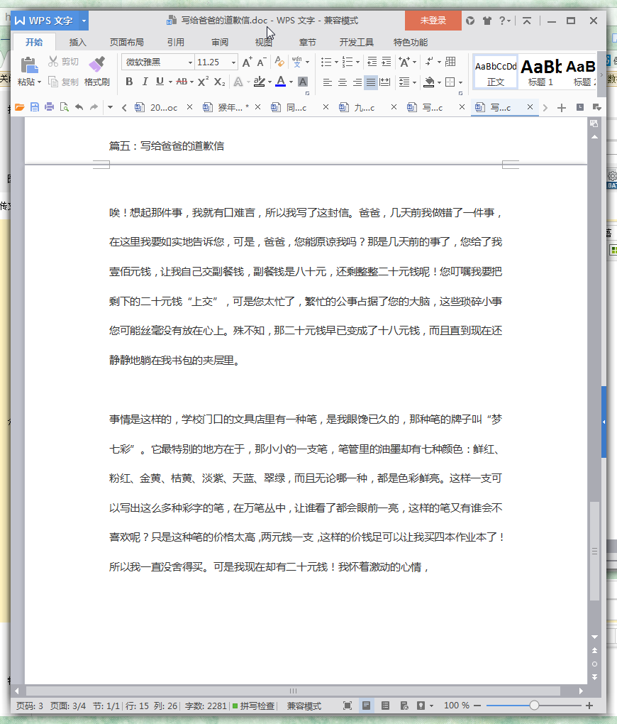 爱的父亲大人:父亲大人在上,不肖子给您磕头了. 老爸!请你原谅我吧!我知道我错了,我以后不会再犯同样的错误,我保证不会再有下一次,我是真心的忏悔,真心的改过,我会听您的话,珍惜金钱不会再乱花钱. 请你这次无论如何原谅我吧!子曰:回也,不二过.我会向颜回学习的.爸爸你不生气了吧!