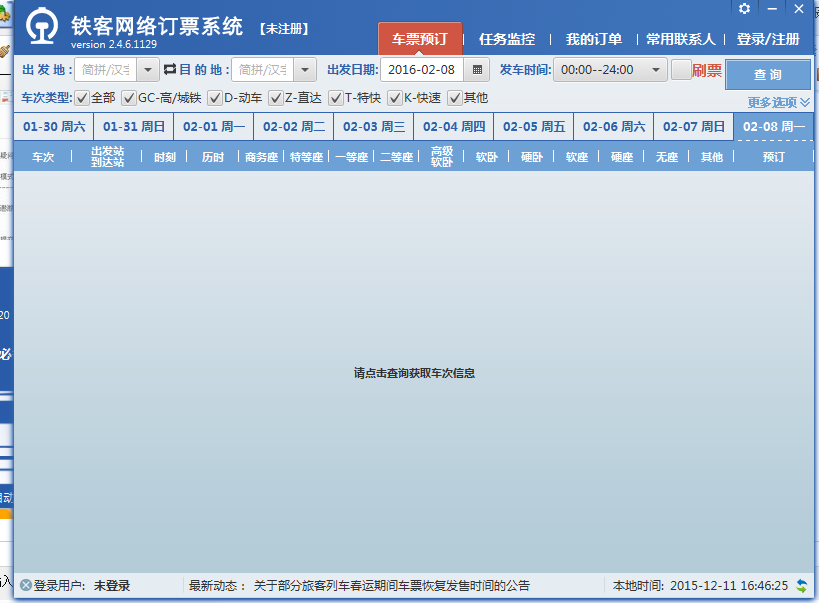 春运火车票抢票利器(春运火车票抢票软件)1.0 免登陆版